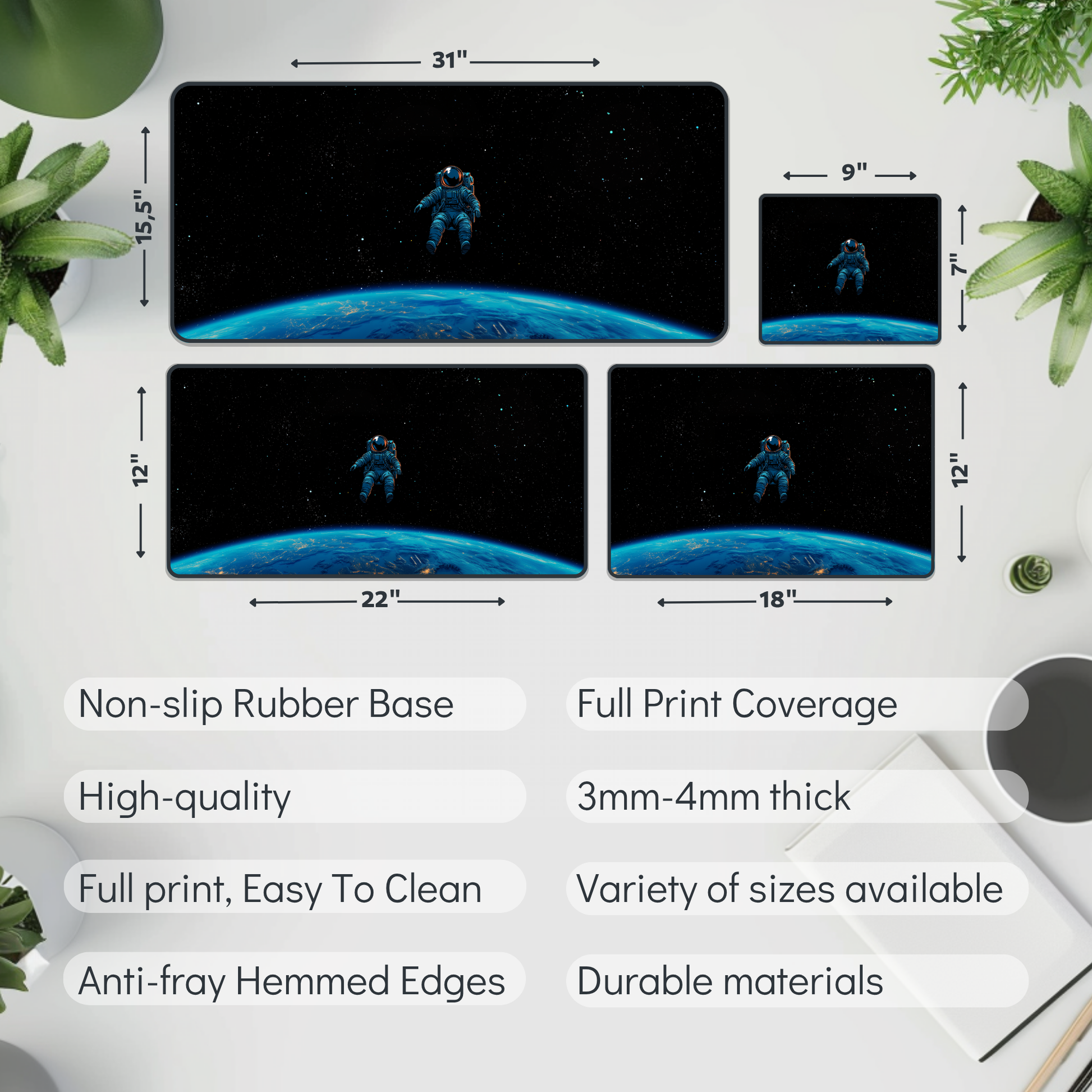 🌟 High Quality Materials: Durable and easy to clean, our desk mats and mouse pads are built to withstand daily use, protecting your desk and improving your workflow.