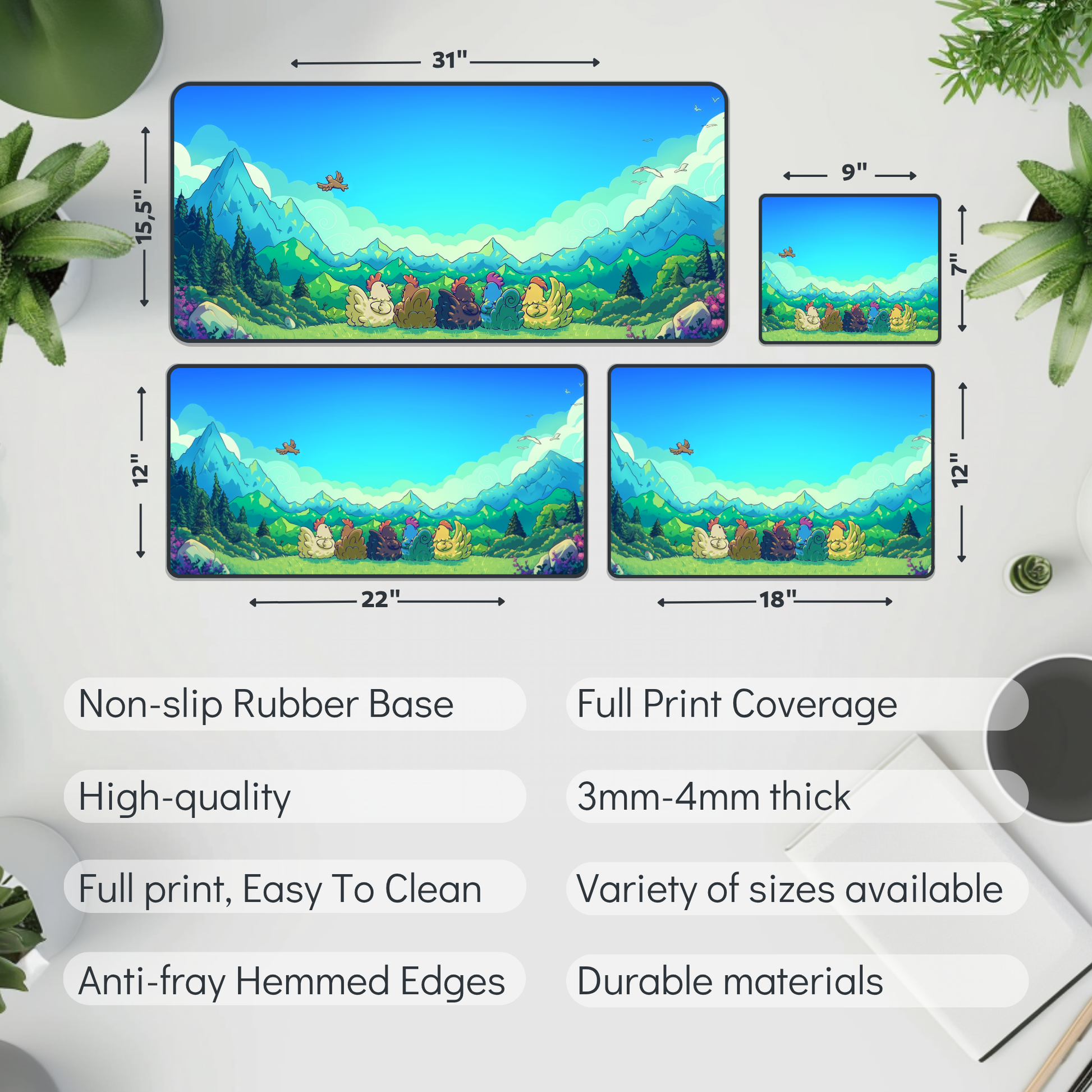 🌟 High Quality Materials: Durable and easy to clean, our desk mats and mouse pads are built to withstand daily use, protecting your desk and improving your workflow.